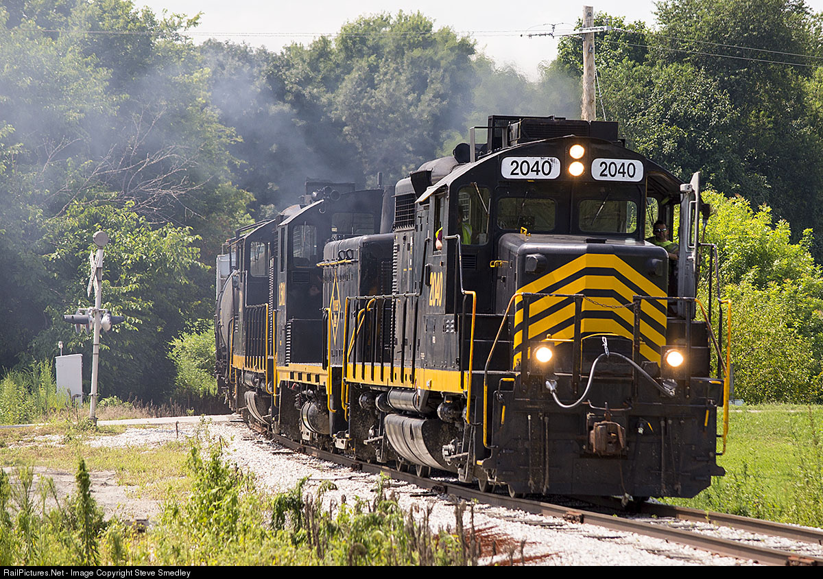 | The rolling museum that is the Keokuk Junction Railway has the Keokuk, Iowa based crew throttling up at Blandinsville, Illinois with twin GP20's bracketing a rare former Illinois Central Railroad SW 1300.