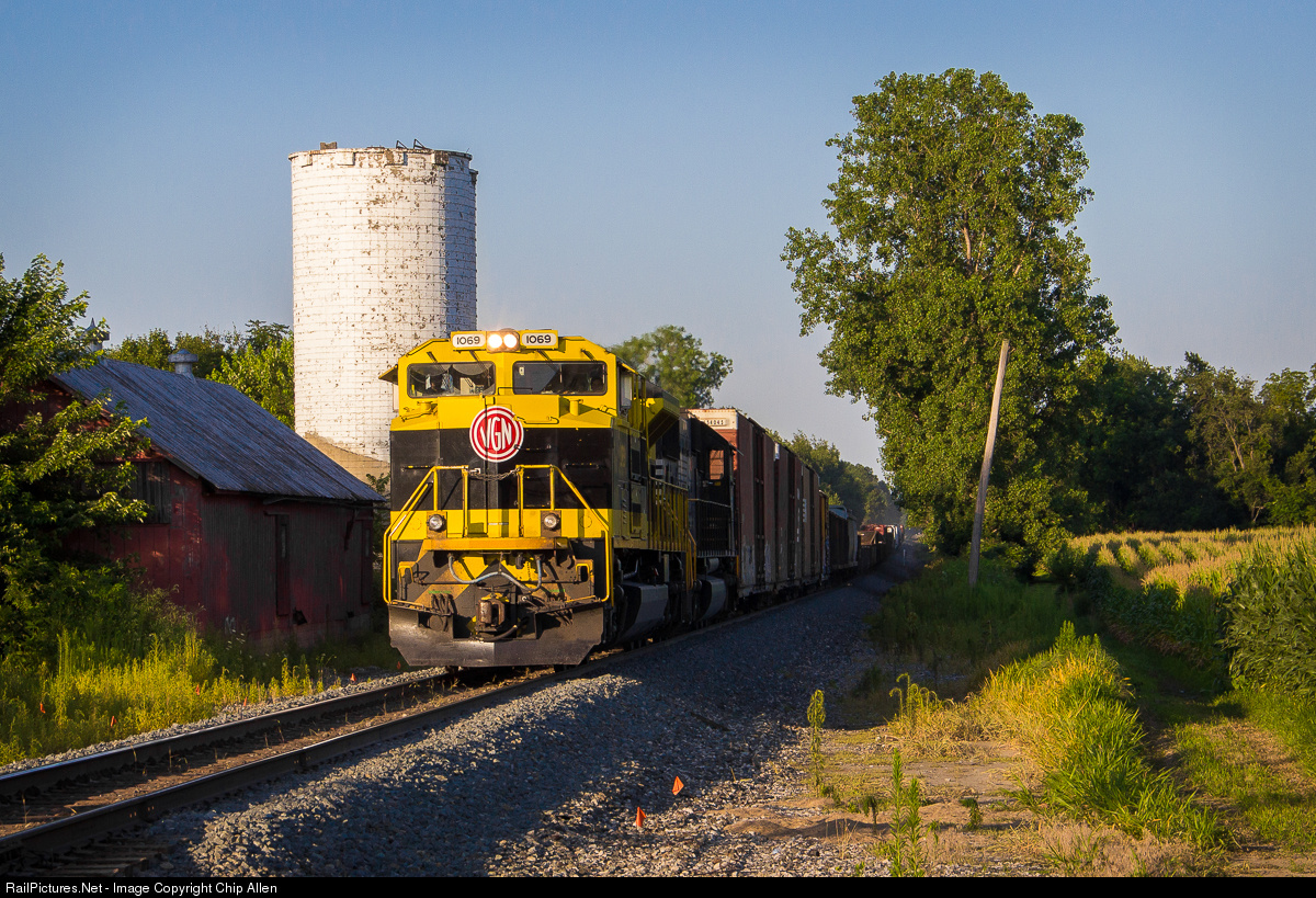 In late evening light, the Virginian heritage engine leads manifest train 145 through Shinrock, OH on the former Nickel Plate Road mainline. The train will change crews at Bellevue, OH before continuing to Kansas City.