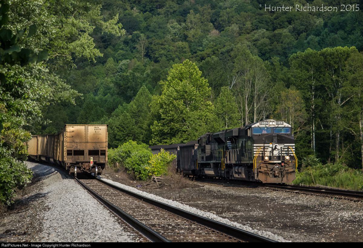 | On the left, NS U48 works upgrade out of Appalachia with an empty Duke Power train in tow as they continue toward Norton on the former Interstate Main. On the right, U57 has just completed loading at Paragon on the former L&N Main to Norton. This seems to be a reoccurring scene on in Appalachia these days. So many jobs and not enough space to fit them all. |