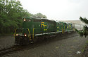 Raritan Central Railway's ex-PRR GP10 switches covered hoppers for Plastic Express as a rainbow forms to the East.