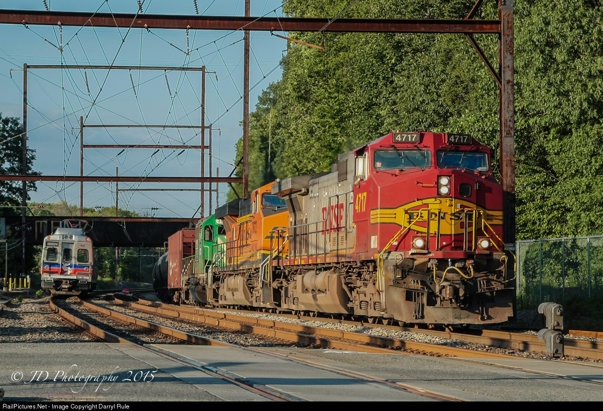 | A BNSF "Fakebonnet" leads Westbound CSX loaded oil train K138 through the SEPTA station area at Woodbourne, PA just before sunset on a warm summer evening. In typical CSX Trenton Line fashion, this train took 5+ hours to make it from Bound Brook, NJ to this location approximately 35-40 miles away. Just an average day on the Trenton Sub!!!! |