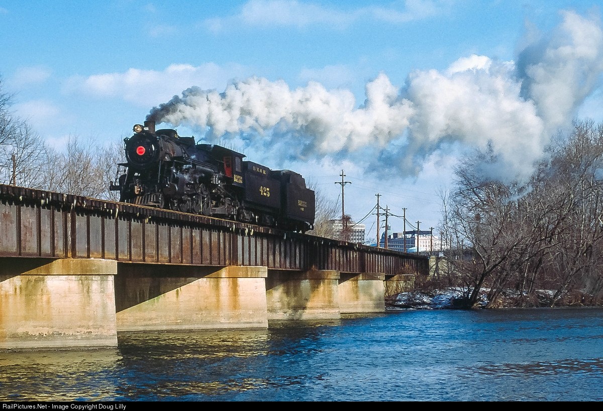 The Blue Mountain and Reading ran a Christmas Shoppers Special from Temple,PA to Philadelphia on December 21, 1985. 4-6-2 425 powered the train to Norristown. I don't recall if passengers transferresd to Silverliners, or if the train went on to Market East with diesel power, but in either case, the 425 did not go past Norrristown. Here, after turning on the wye at Norristown, the 425 rolls across the bridge between Barbadoes Island and Bridgeport.