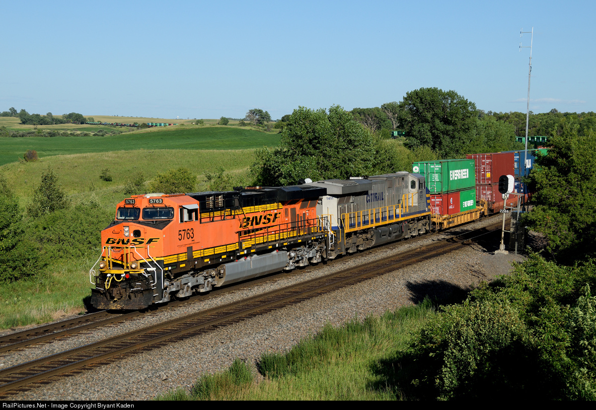 BNSF 5763 is a decade old, but it was at least recently washed and looking pretty good as it leads a stack train westbound toward Dilworth.
