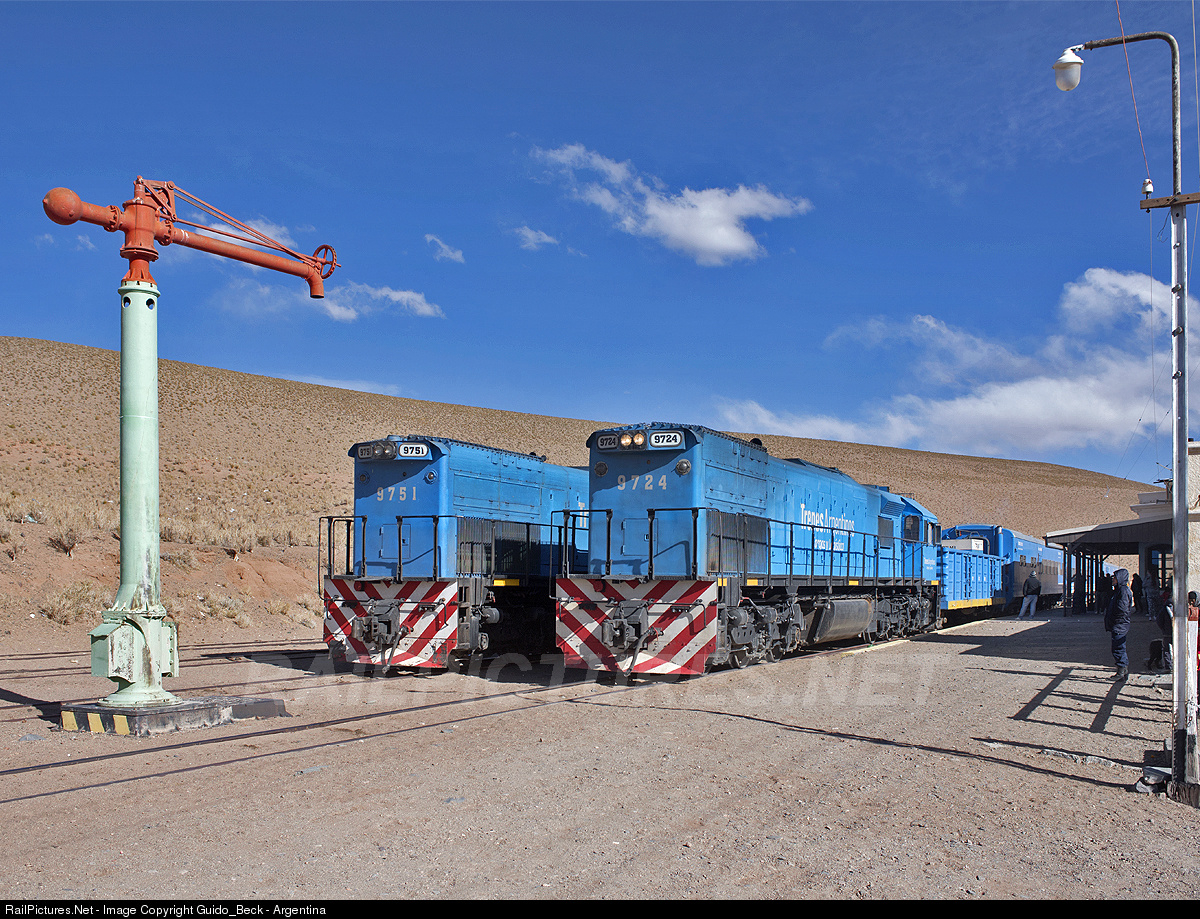 | Tren de las nubes arriving at San Antonio de los Cobres station comming back from the "Viaducto La Polvorilla", this station is at 3950 msnm / 11850 ft above sea level. |