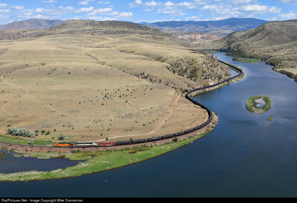 A westbound BNSF oil train follows the contours of the Missouri River in Lombard Canyon on the afternoon of June 25, 2015. The sinuous canyon is located on Montana Rail Link’s scenic Second Subdivision.
