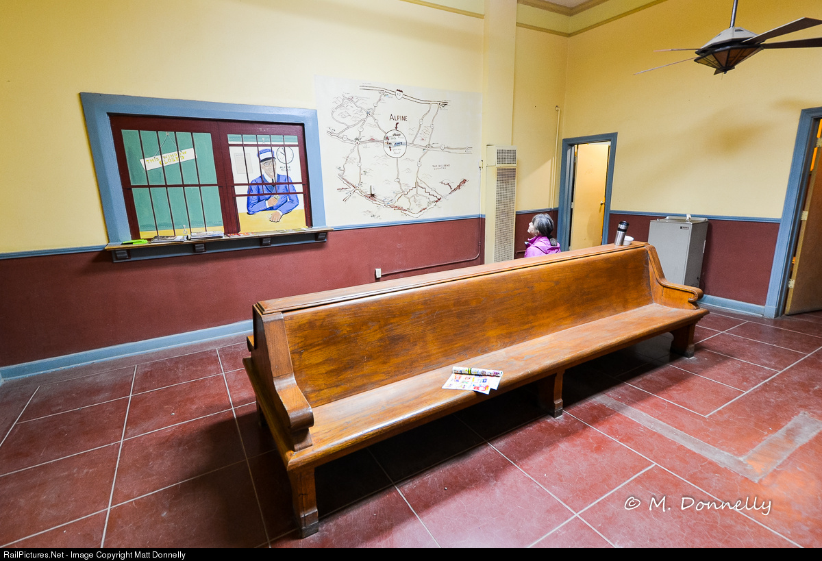 | A lone lady looks at the map painted on the wall in the Alpine station. No, she wasn't trying to strike up conversation with the agent. |