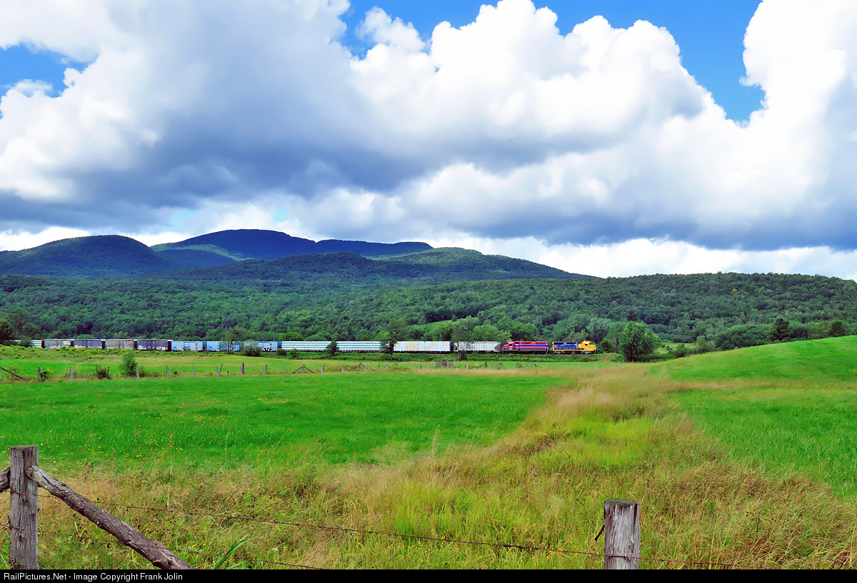The Farnham-Newport Vt manifest 710 skirts the Quebec/Vermont border as it rolls through the scenic Missisquoi River Valley
