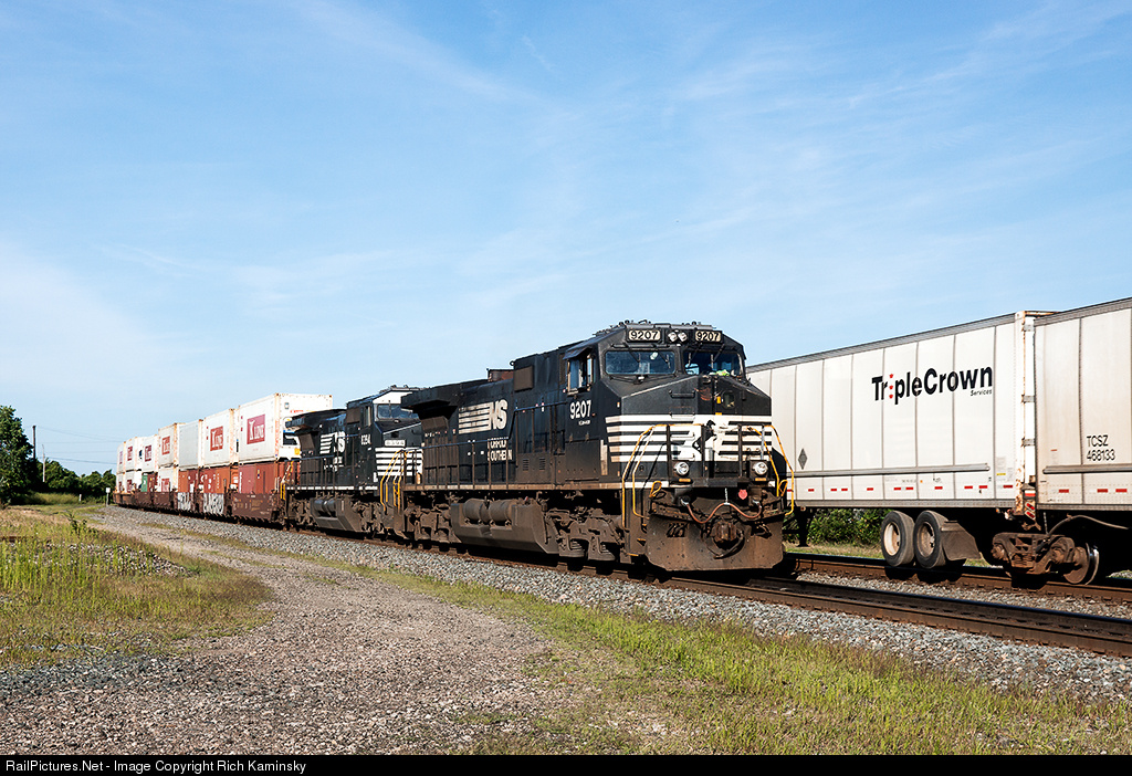 NS 25V with NS 9207 leading meets Roadrailer NS 262 on the NS Cleveland Line