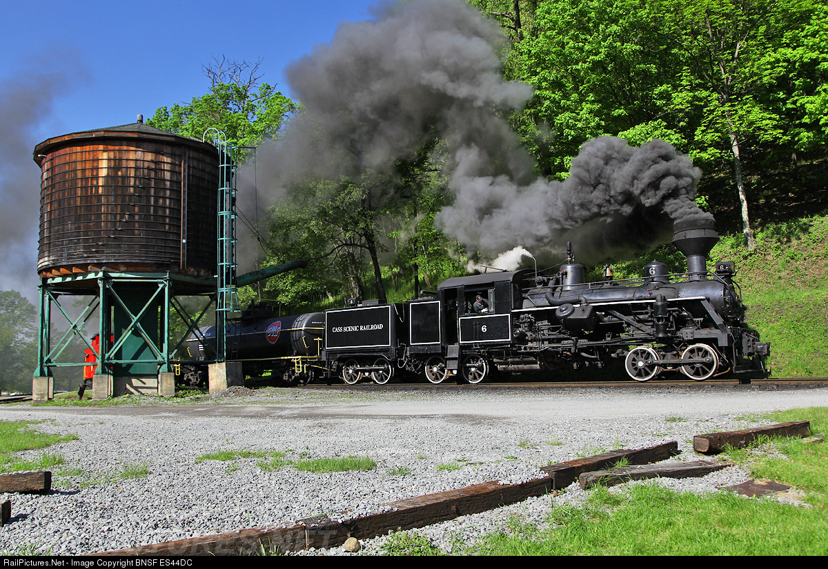 RailPictures.Net Photo: CSRR 6 Cass Scenic Railroad Heisler 3 Truck at Cass, West Virginia by BNSF ES44DC