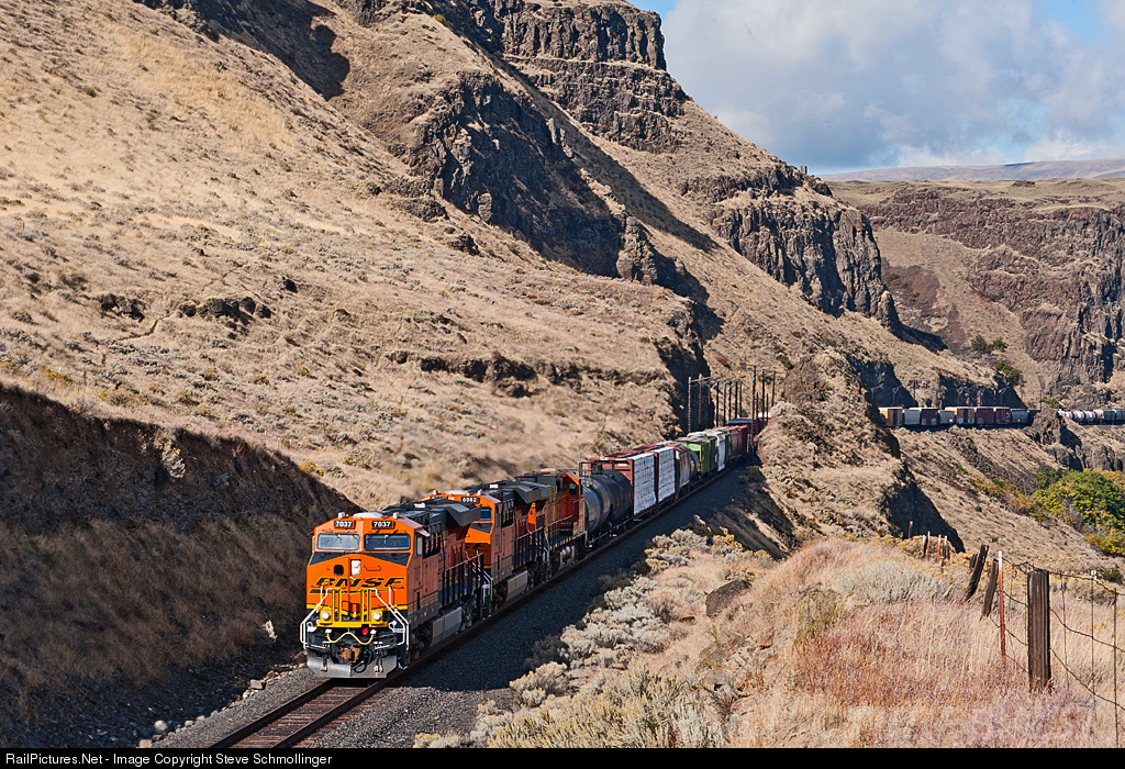 RailPictures.Net Photo: BNSF 7037 Burlington Northern Santa Fe GE ES44C4 at Celilo, Oregon by Steve Schmollinger