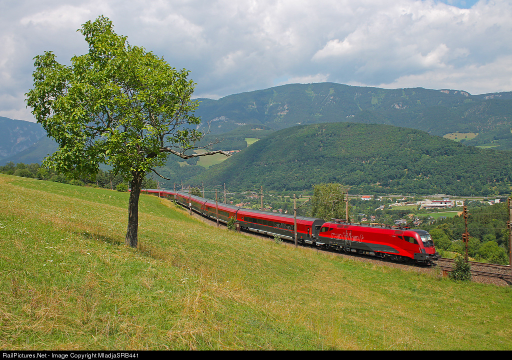 Railjet 78 from Graz HBF to Prague hl.n. Semmeringbahn, amazing railway route through Alps.