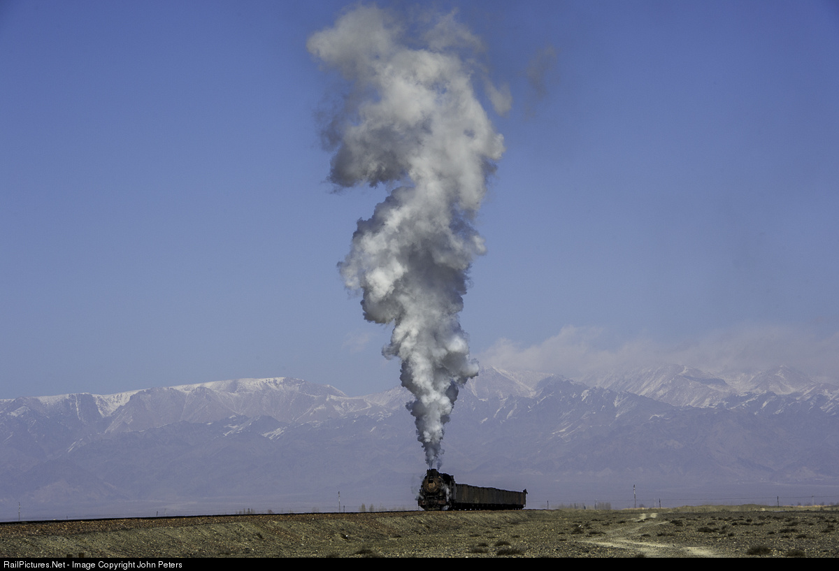 On the 3rd of March 2014, the snow capped Tian Shan mountains are a backdrop for a loaded coal train returning from the underground mine at Beiquan on the Sandaoling Coal Railway in north west China. Given the constant dust and smoke from burning coal seams, clear days where the mountains are visible are not common.