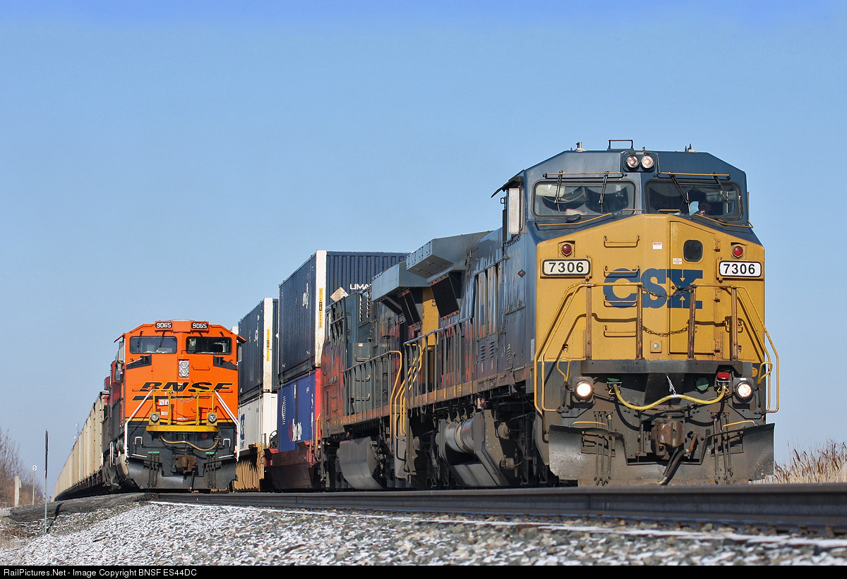 RailPictures.Net Photo: CSXT 7306 CSX Transportation (CSXT) GE C40-8W (Dash 8-40CW) at Willard, Ohio by BNSF ES44DC