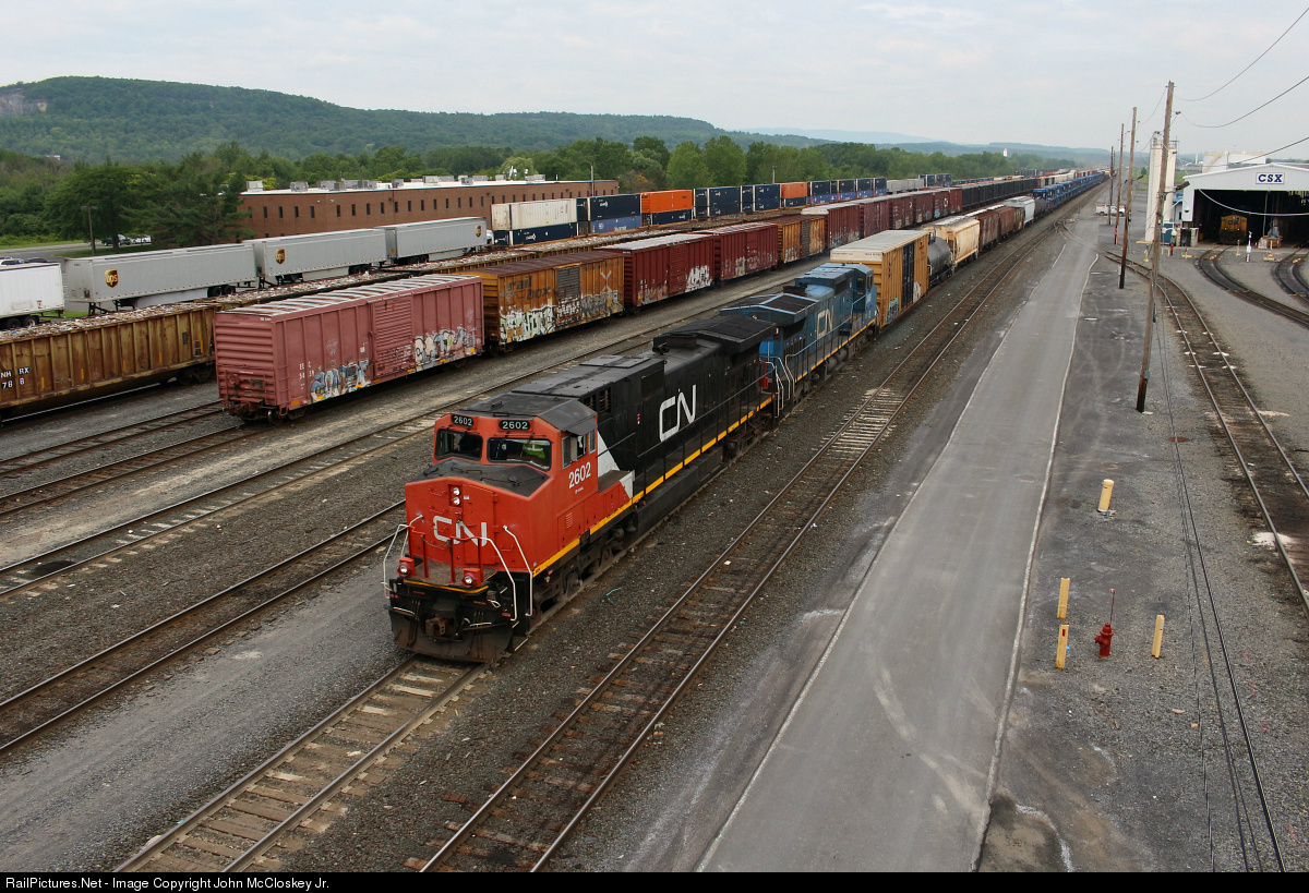 Q620 a Selkirk mixed freight off of CN is seen pulling up to cut from the train after the long journey from Canadian with the Red, White, & Blue power.. Selkirk was quite busy on this morning as well. On the far track (Track 11), Q019 can be seen heading west while numerous trains are in between them waiting to be humped.