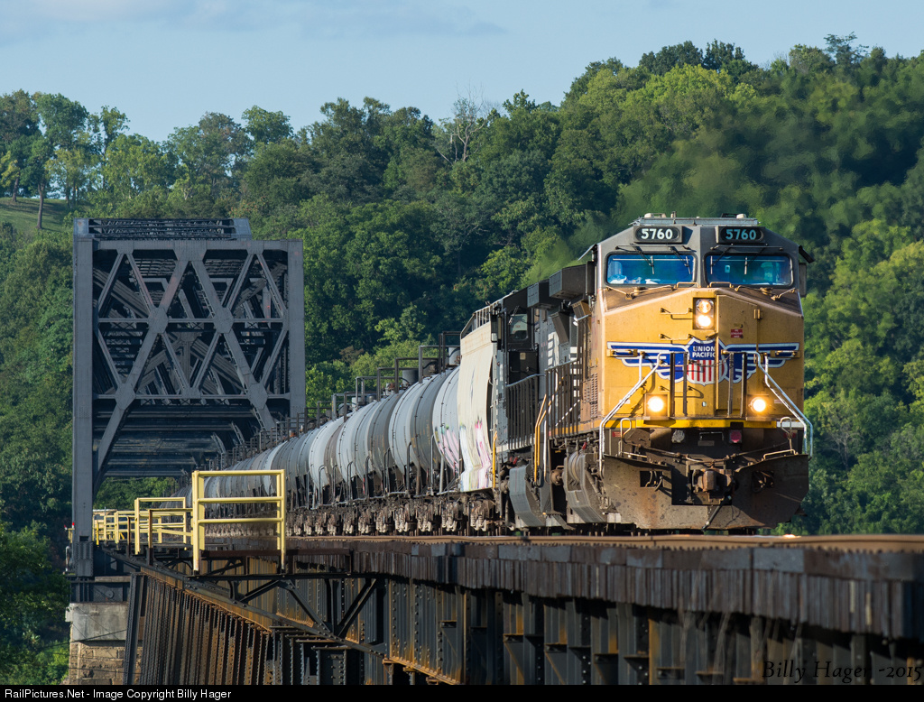 | Eastbound loaded ethanol train 64A passes through Kenova, over the bridge spanning the Ohio River and the city of Kenova, on a nice August evening. |