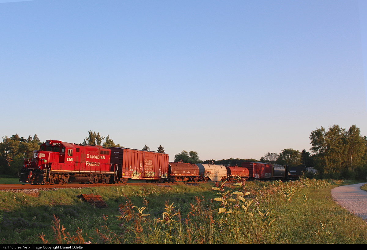 GP9u as DPU? Not quite. About five weeks ago, CP 420 ran down from Winnipeg with two GP9u units (1585, 1633) right smack in the middle of the train. Both units were dropped off in Sudbury, however. This action was repeated though, and CP 8250 is seen here at the tail end of 420 as it winds the curves at Palgrave two weeks afterwards. At the head end is CP 8724, 8794, 8825, 8924, 5879. So why exactly is 8250 dead in tow at the end of the train? I couldn't tell ya. However, knowing the scarcity of CP GP9u's left, it was definitely good to see one. 8250 had started out from Winnipeg six days earlier, however the drawbar broke and it was replaced in Thunder Bay. That could explain it's position in the train, so in train forces could be dramatically reduced on the couplers to prevent that from happening again. 8250 has a bill of lading on its left side window, which likely paints a grim picture for it. After arriving in Agincourt yard later on this night, it has not moved since.