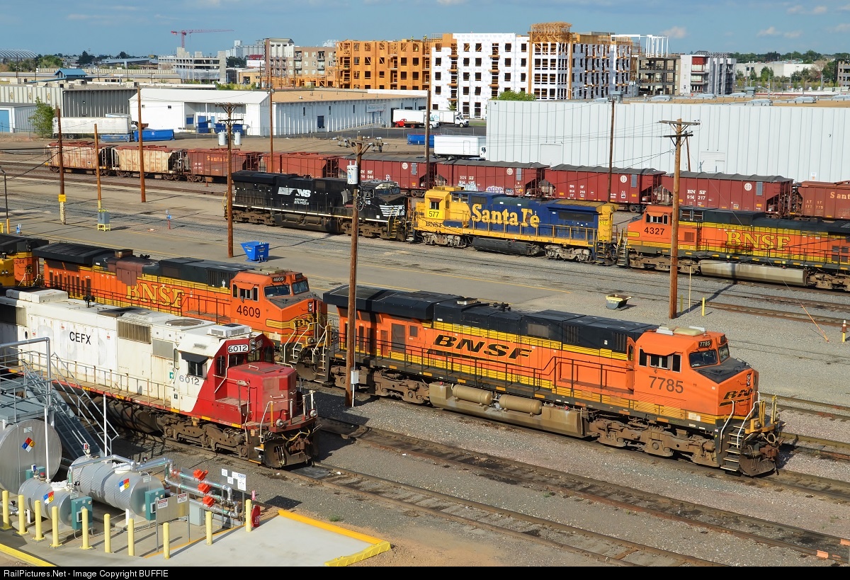 A colorful lineup can usually be found at the BNSF engine servicing facility in Denver.