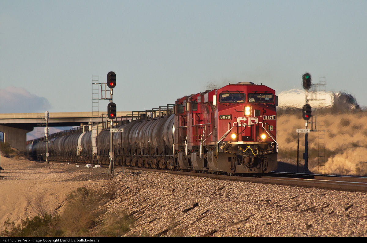 After spending Christmas in Los Angeles, I began my journey back to Valentine. Before leaving, I learned that a westbound manifest had a solid Canadian Pacific consist on it was going to pass by that day. I figured I wouldn't see it in daylight so I didn't take much interest in it. As I was crossing into Arizona, my friend let me know it was approaching Kingman. So, doing some quick math in my head, I figured I could beat it to Yucca. Beating it by about fifth-teen minutes, I was able to photograph my first CP leader.
