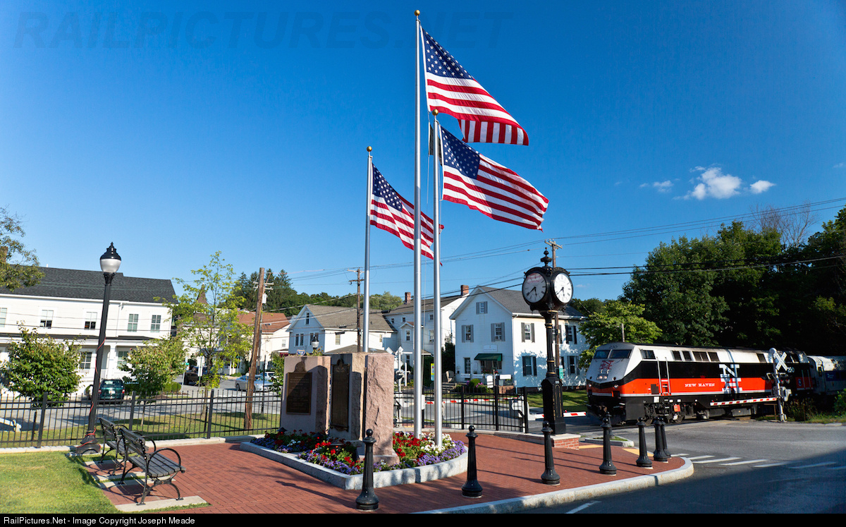Train 9943 entering the Pawling Business District for a station stop on this calm summer evening. This train will turn as a thru train to GCT from Wassaic on the return trip.