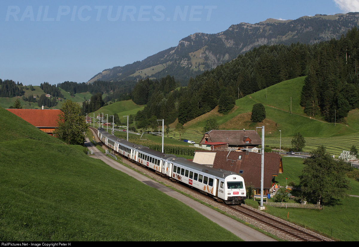 Here the train runs as RegioExpress 4381 through the late afternoon landscsape at Wiggen on it's way to Lucerne. |