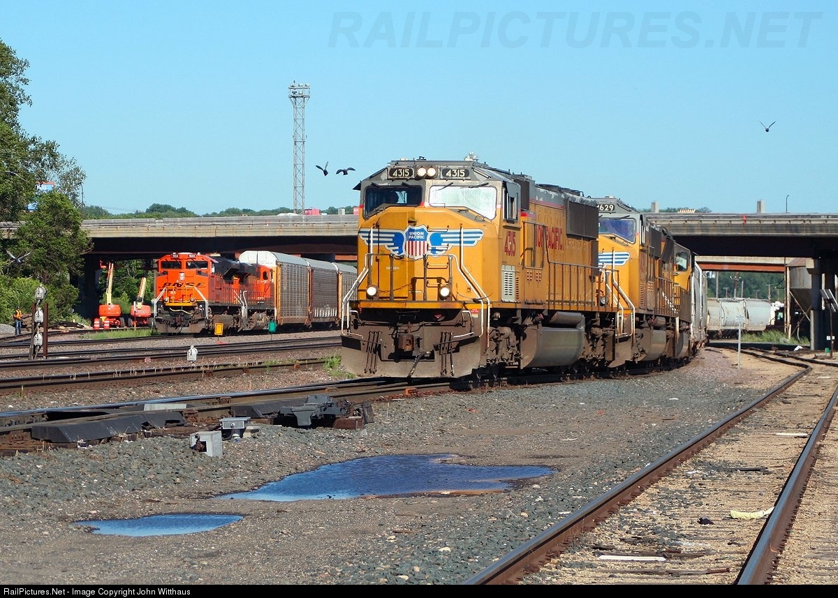 | As always, Hoffman Ave. is a mess today. Here a UP train departs the Belt yard, and ties up the entire plant as they cross all the way over from the Belt to BN main 1. BNSF and CP trains are waiting on both sides for this guy to clear up. Taken while off duty, wearing full PPE. |