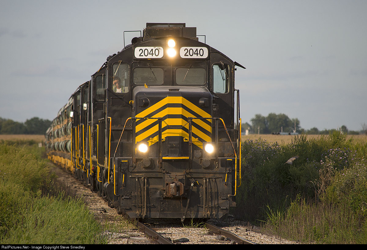 Keokuk Junction Railway's West bound unit pipe train rolls along at 10mph west of Elvaston, Illinois on the return trip to Keokuk, Iowa, on Wednesday evening, August 26, 2015. STEVE SMEDLEY PHOTO