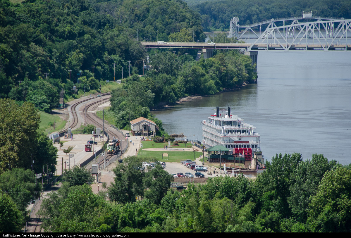 A light engine move rolls southbound along the Mississippi River at Hannibal, Mo., as seen from the Lover's Leap park just south of town.