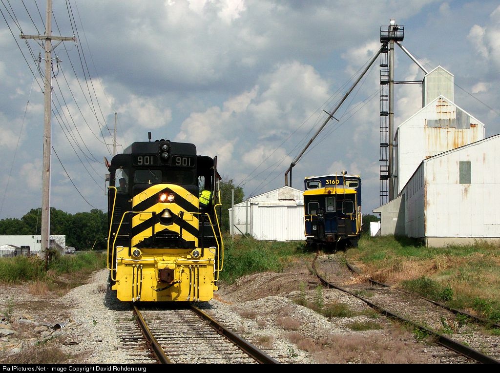 The Cincinnati Railway Company's restored Nickel Plate Road GP30 901 shoves an inbound Lebanon, Mason & Monroe Railroad "Day Out With Thomas" Special train towards the Lebanon Station, passing the Trupointe elevator on the outskirts of Lebanon. While Thomas is the star of the show on the other end of the train, NKP 901 is providing the real "muscle" behind him by powering the train. Local railfan James Corbett's former C&O caboose can also be seen resting on the Trupointe spur. For more information on the LM&M and all the other Cincinnati Railway operations, please visit http://www.cincinnatirailway.com/.