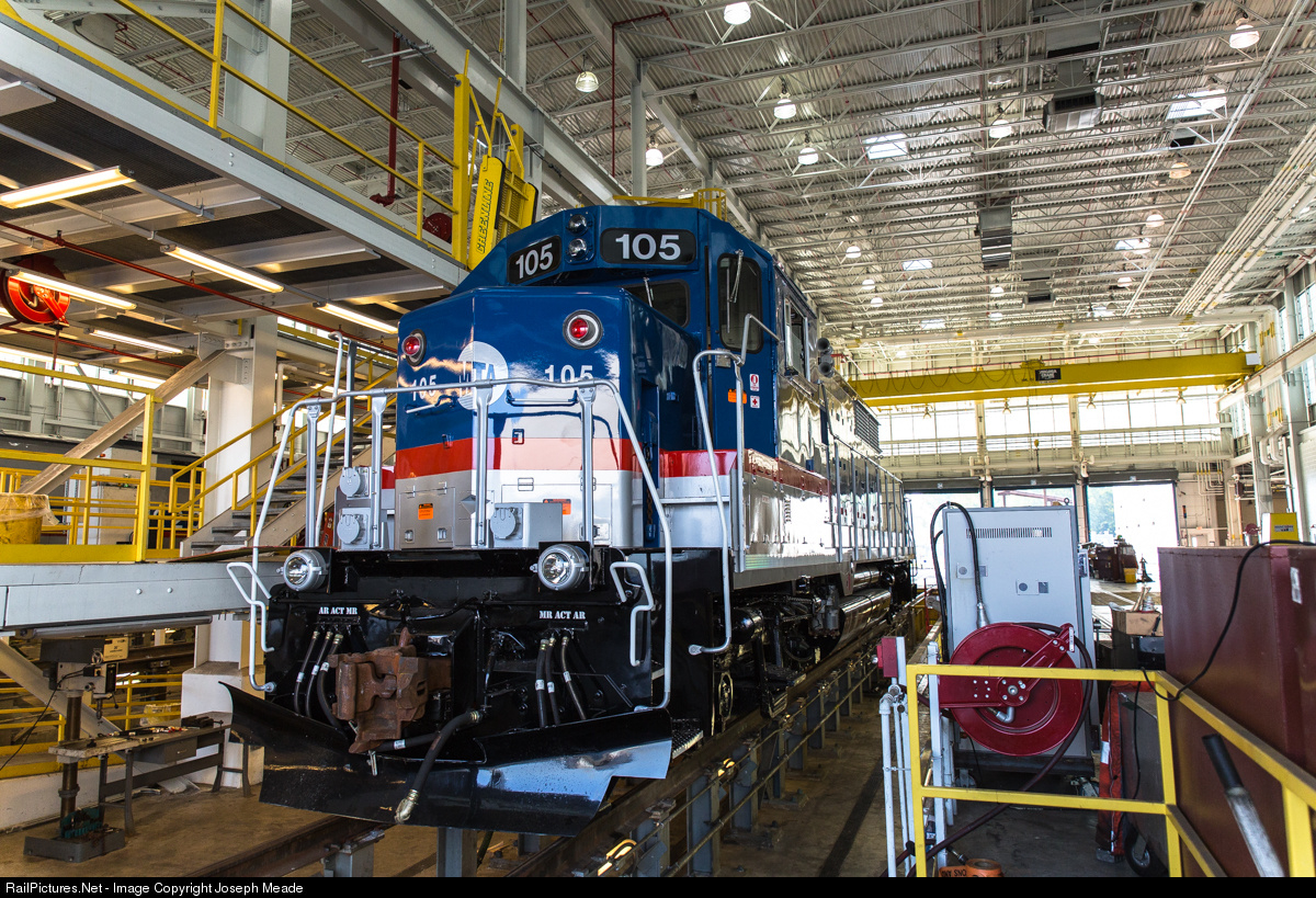 Freshly rebuilt from Brookville, the 105 is seen here in the Harmon Locomotive shop on display. The remaining five GP35's are slated for rebuild. Photo taken with permission.