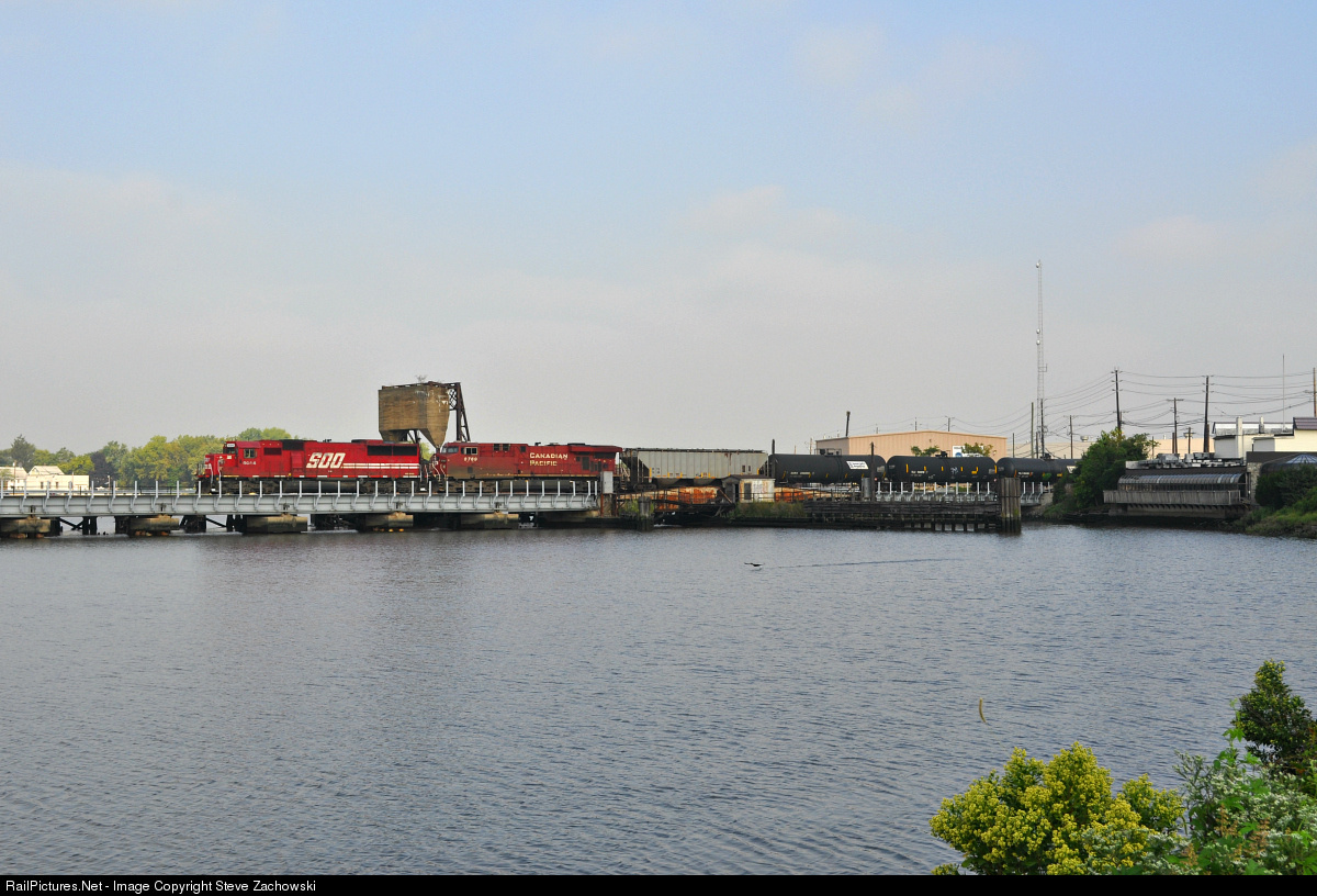 Hot ethanol loads bound for the Chemical Coast have a pair of Canadian visitors leading the way, the leader being one of only a few remaining SOO SD60s wearing the less common candy apple red scheme. |