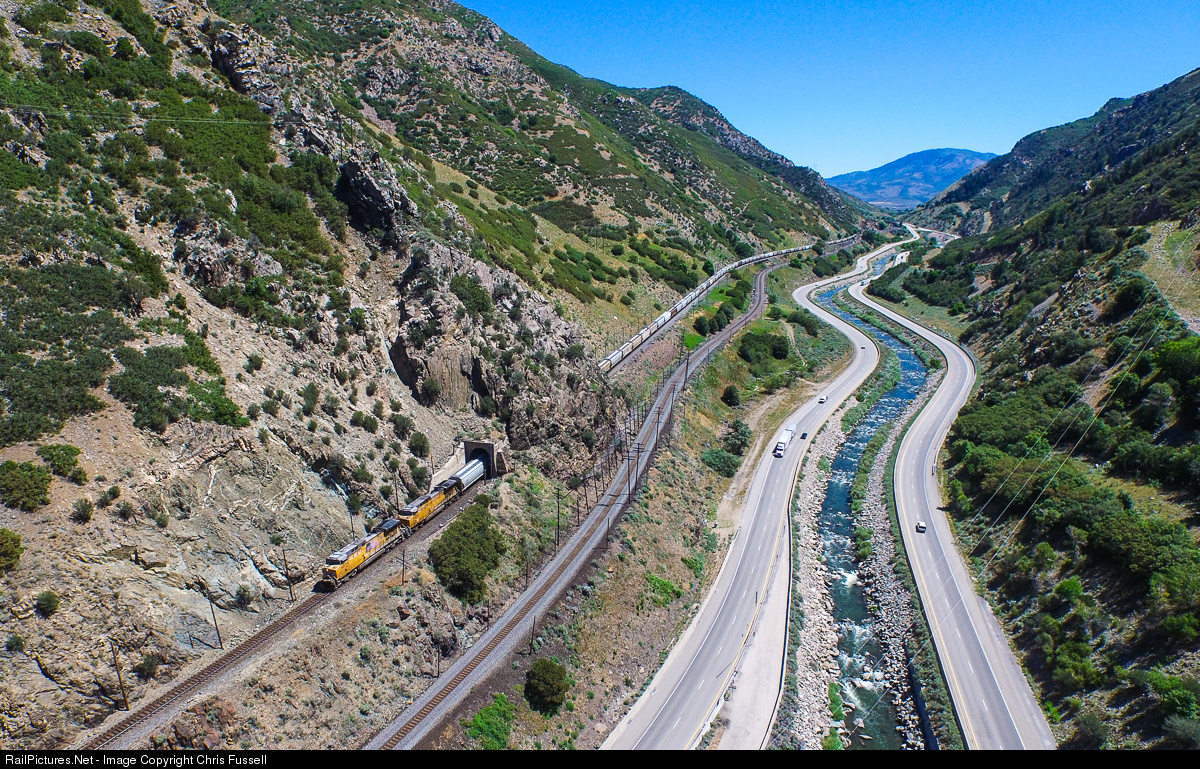 Trains between Ogden, UT and Evanston, WY typically run directionally (there is no 'left' or 'right' track because they crossover at Curvo further up the line) unless needed to diverge otherwise. In this case due to MOW work, a westbound train is operating on the track typically used for eastbounds as one track has a steeper grade than the other, and as a result through Sheephead Tunnel.