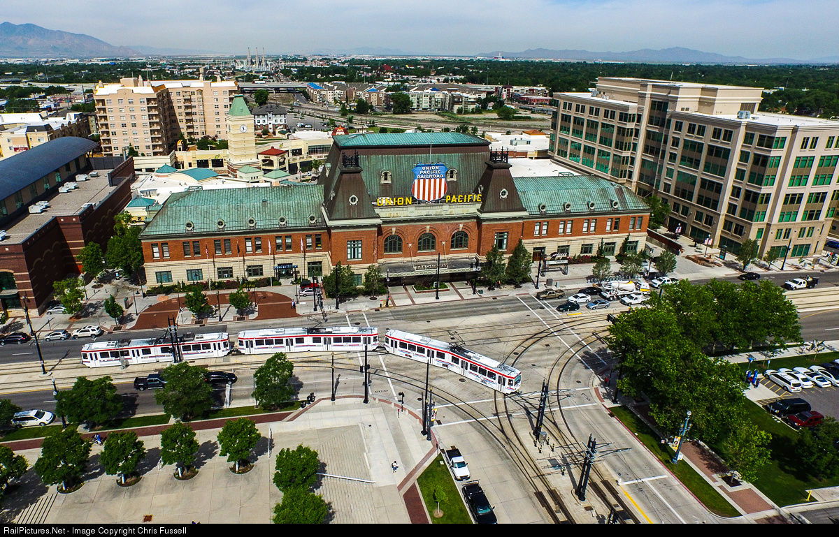 Salt Lake City's Union Pacific Depot had its tracks removed in favor of mall development in anticipation of the 2002 Winter Olympics. Same for the Rio Grande depot down the street, where Amtrak California Zephyr, Pioneer and Desert Wind trains stopped. Salt Lake City shoved their passenger trains under a crummy overpass further away from downtown while rendering two magnificent depots trainless in the name of retail development. As the years went on, rail slowly started making a comeback in the form of TRAX and FrontRunner commuter trains, so riders do have means of getting between the Amshack and downtown as shown.