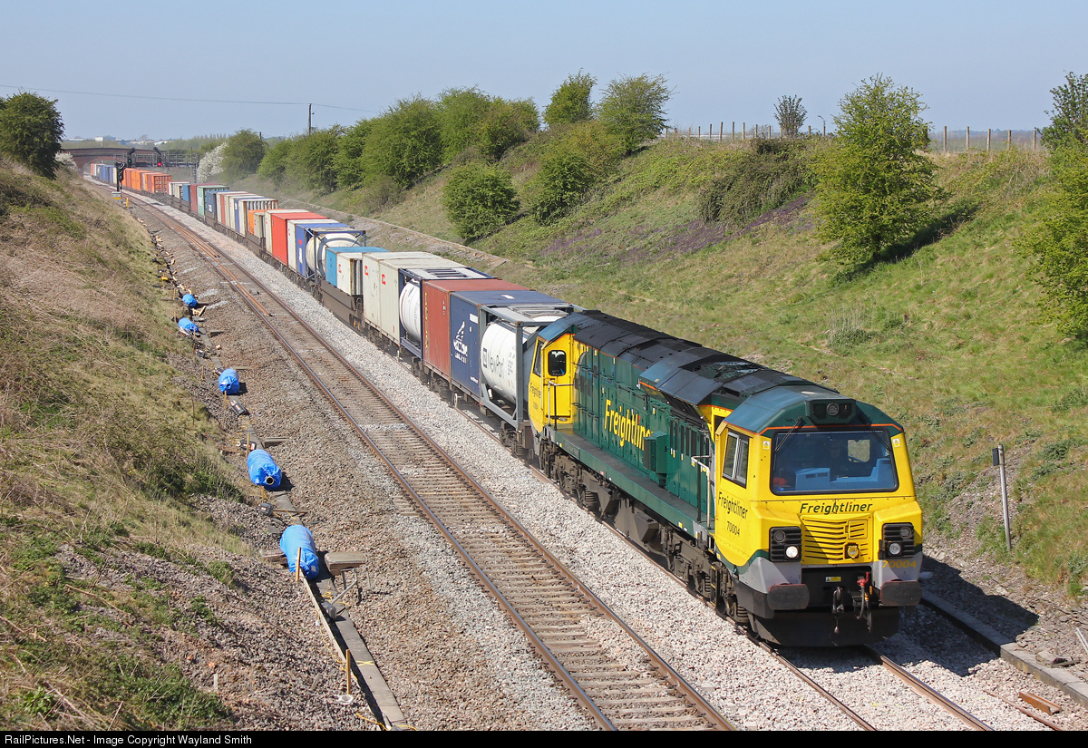 | 70004 running at reduced speed following weekend engineering work to lower the track at two locations near Bourton. These brick bridges are part of the original GWR built between 1838-1840 and were made listed structures in 2012 meaning that for electrification the track must be lowered rather than the bridges rebuilt. |