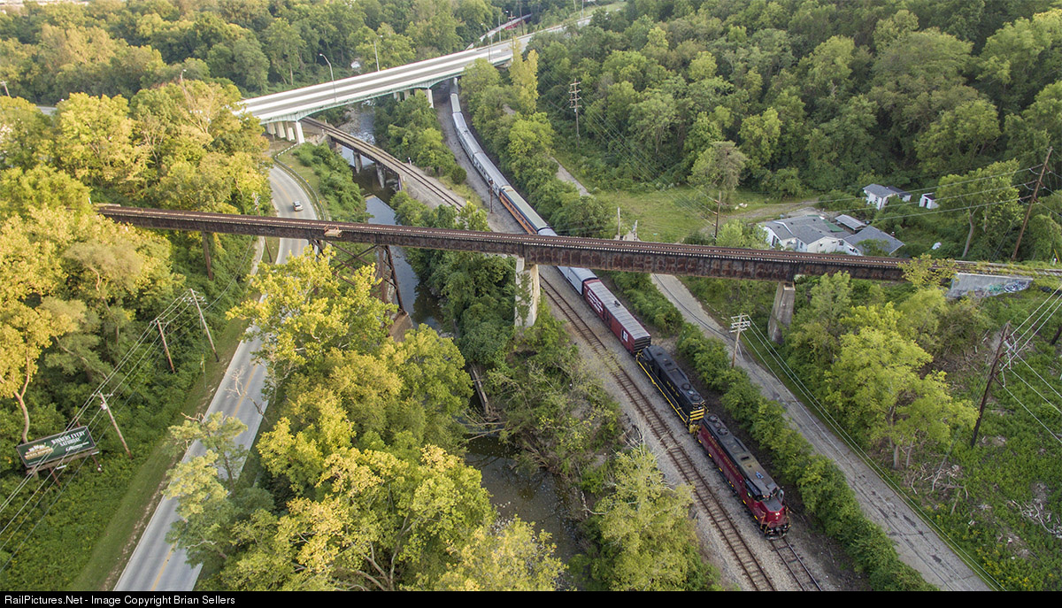 | CRC 902 and NKP 901 ease their train west through Valley and onto Indiana & Ohio’s Oasis Secondary. This is the first time the Cincinnati Railway has combined both their dinner train & coach cars into one “Fireworks Train.” The consist of seventeen cars and two locomotives is heading for downtown Cincinnati where riders will deboard and walk a short ways to the riverfront for the Western & Southern / WEBN Labor Day Fireworks. The trestle overhead was once part of Norfolk Southern’s (N&W) Hyde Park Branch. It hasn’t seen a train since 2009 and will eventually be turned into a bike path. To learn more about the Cincinnati Dinner Train or the Fireworks Train, please visit: http://www.cincinnatirailway.com/ |