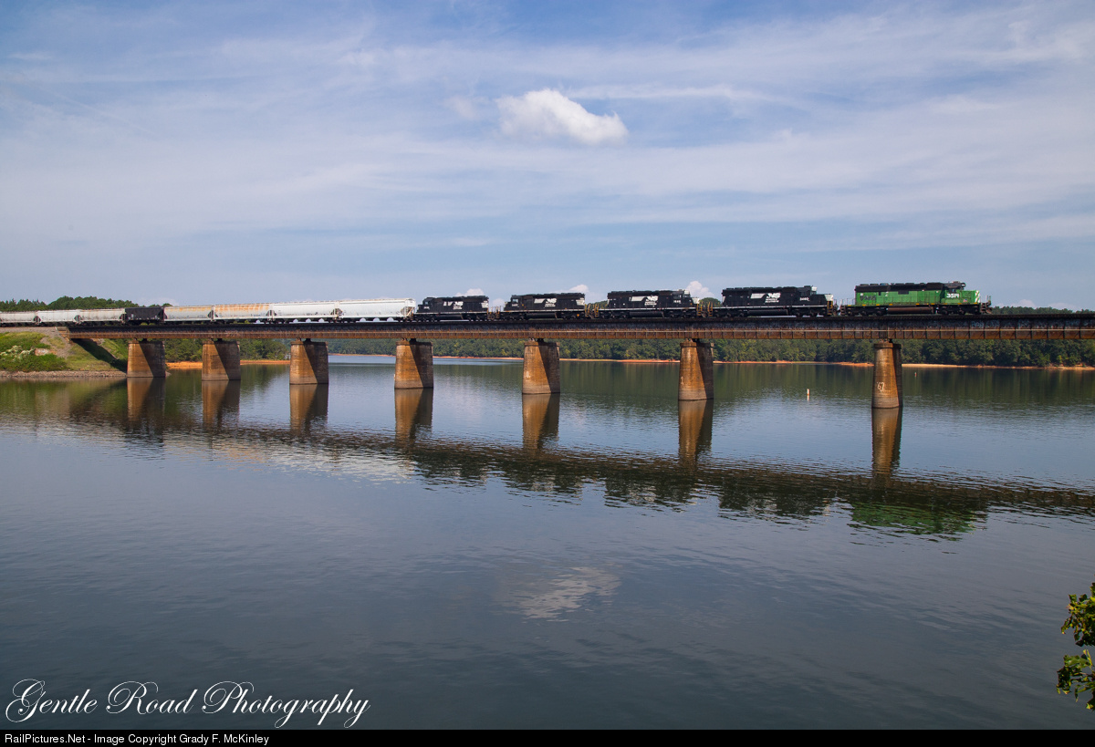 | In a scene that has a little 1994 feel to it, NS #3514 (one of the 3 remaining in BN paint) leads northbound P90 across the Seneca River in Clemson, SC on this beautiful early September morning. |