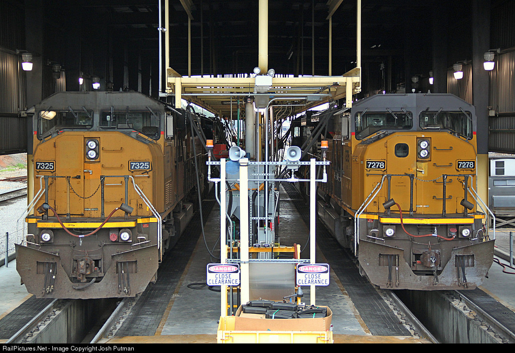 Two former UP SD90MAC's await their next assignment at Norris Yard Diesel Shop. ** Photo taken with permission**