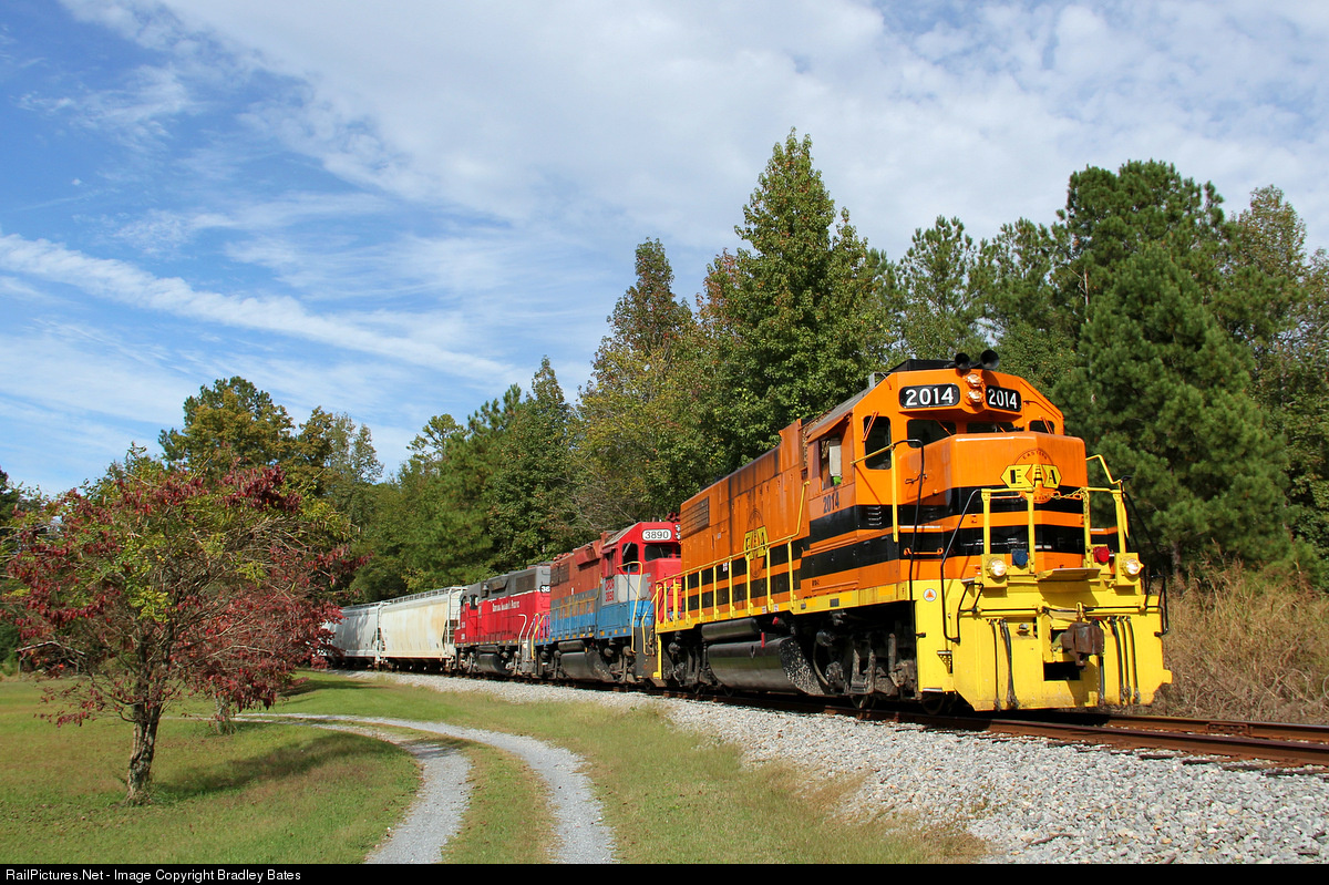 Eastern Alabama Railway is seen here heading South back to Sylacauga, AL. With interchange from CSX at Talladega, AL. As they pass through Emauhee, AL. Its very rare to see the EARY make daytime runs North, but due to track work they did so in late 2013