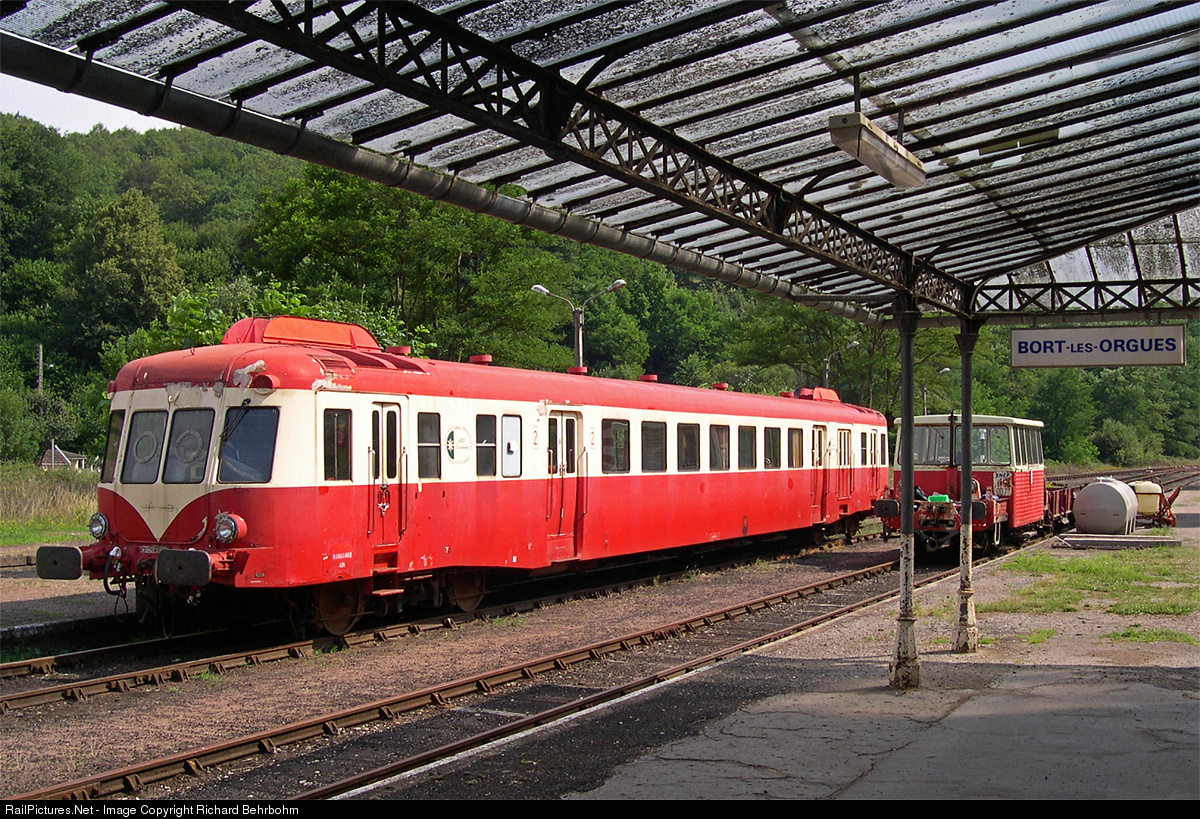 SNCF railcars X 2400 (600 PS, 440 kW, 12 passengers 1st and 56 2nd class ) were built from 1951 to 1955. The last X 2400 was out of use by SNCF in 1989. X 2403, overhauled and renovated 2006 – 2008 by association Chemins de Fer de la Haute Auvergne, has the authorization for running on SNCF-lines.