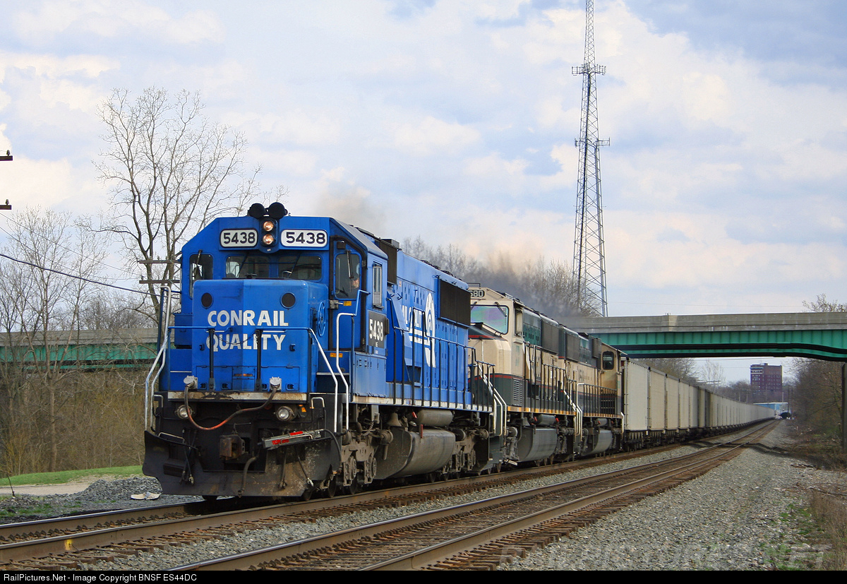 | An old CR SD50 leads an empty Powder River Train through Alliance, OH. Bayard Branch. This train unloads at Stratton, OH. First Energy Power Plant. |