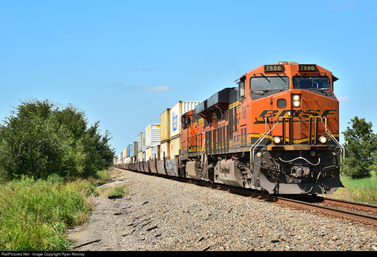 RailPictures.Net Photo: BNSF 7886 Burlington Northern Santa Fe GE ES44C4 at Wallis, Texas by Ryan Nicolay