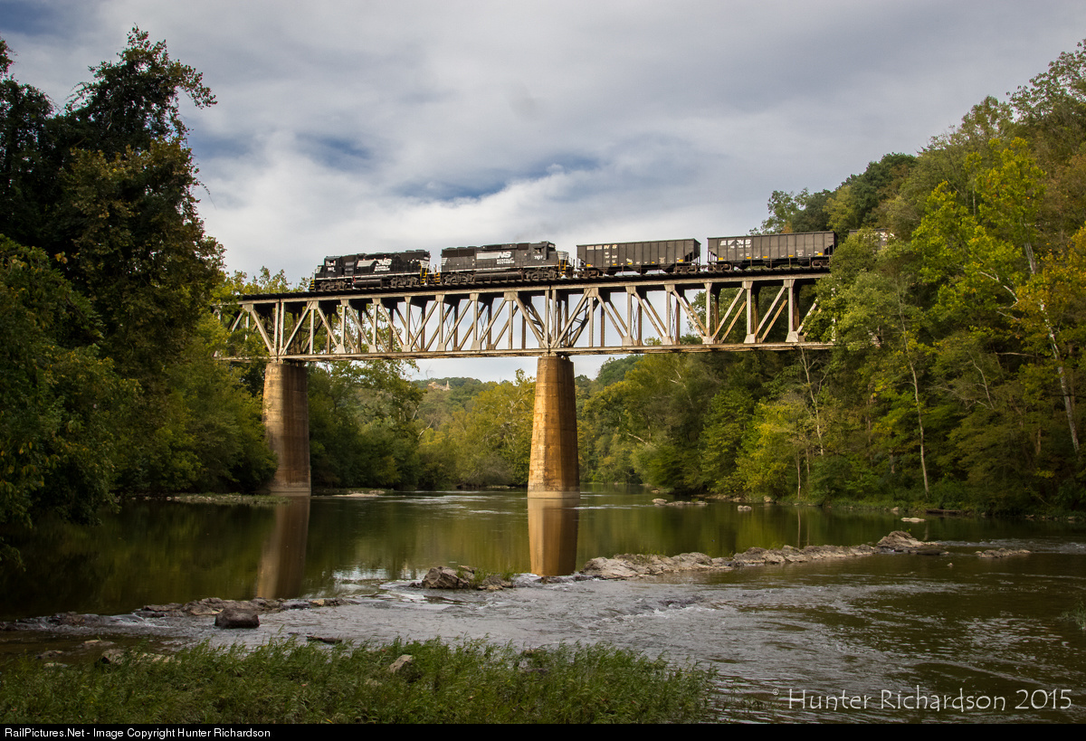 In beautiful golden afternoon sunlight, a pair of old school NS EMD's lead a string of empty hoppers across the former Clinchfield North Holston River Bridge. This train is running north on CSX, and is bound for the NS at Frisco, and will eventually tie down at Yuma on the Appalachia District.