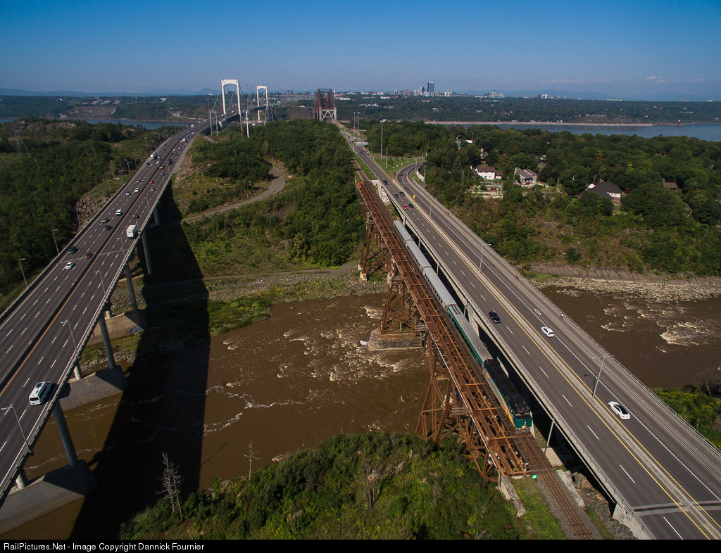 VIA 25 rumbles across the Chaudière River Bridge.