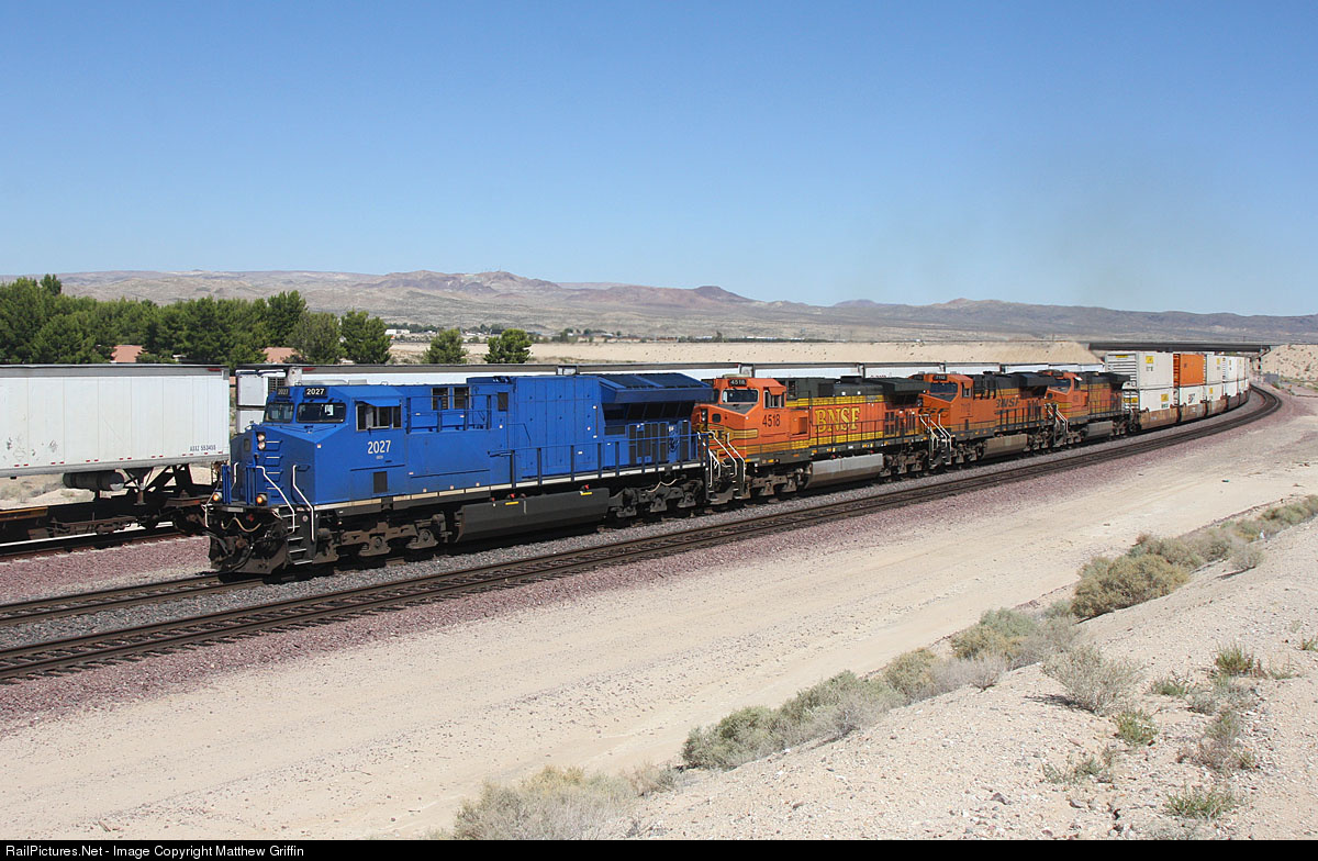 | GECX 2027 leads this QCHILAC at W. Barstow as it begins it's journey down the Cajon Sub. Catching these blue beasts as been tough here on the Transcon as 99% of the time they are trailing units, but not today! |