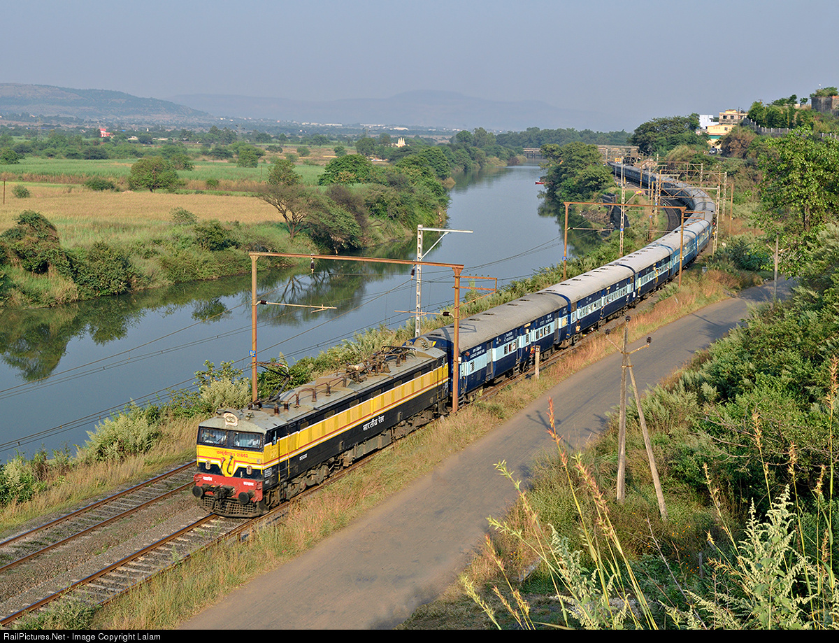 Pune to Indore express train, runs parallel to river Indrayani in Kamshet.