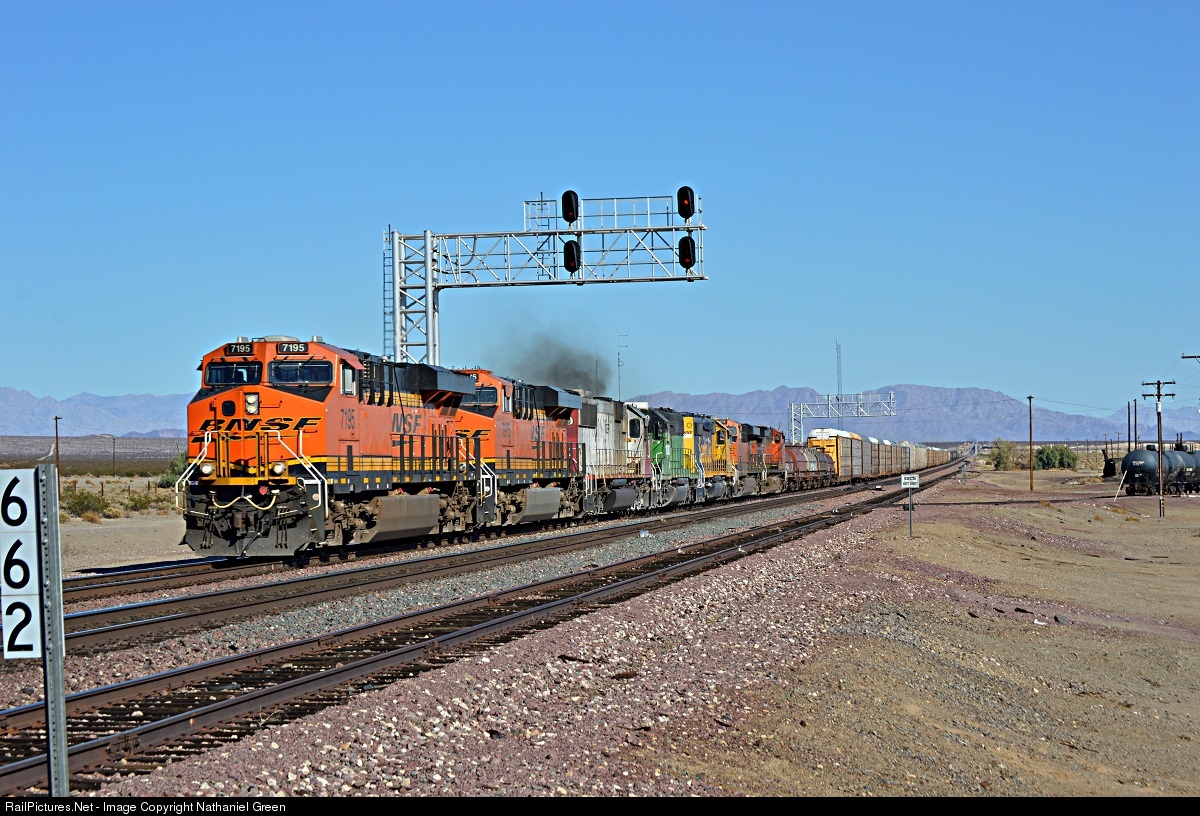 RailPictures.Net Photo: BNSF 7195 Burlington Northern Santa Fe GE ES44C4 at Amboy, California by Nathaniel Green