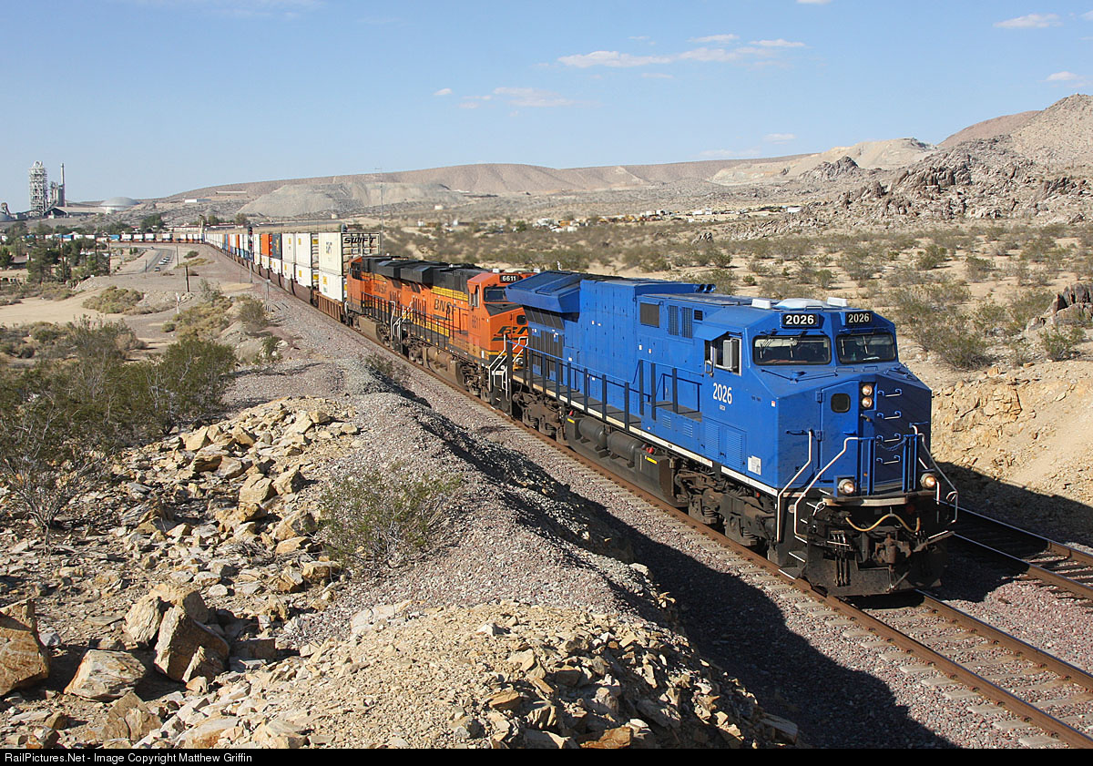 GECX 2026 leads a westbound QCHILAC as it heads towards Cajon Pass at Oro Grande.