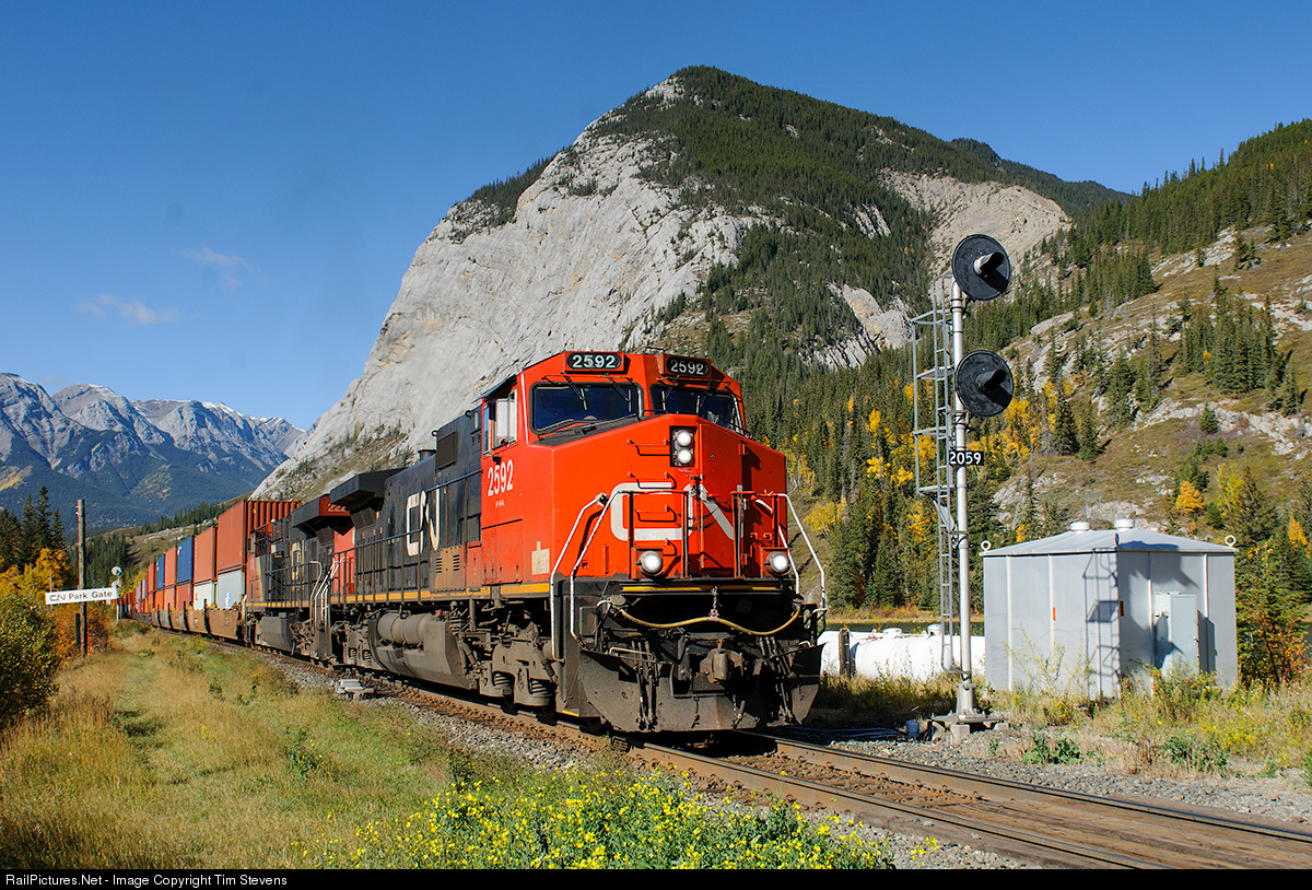 RailPictures.Net Photo: CN 2592 Canadian National Railway GE C44-9W (Dash 9-44CW) at Jasper National Park, Alberta, Canada by Tim Stevens