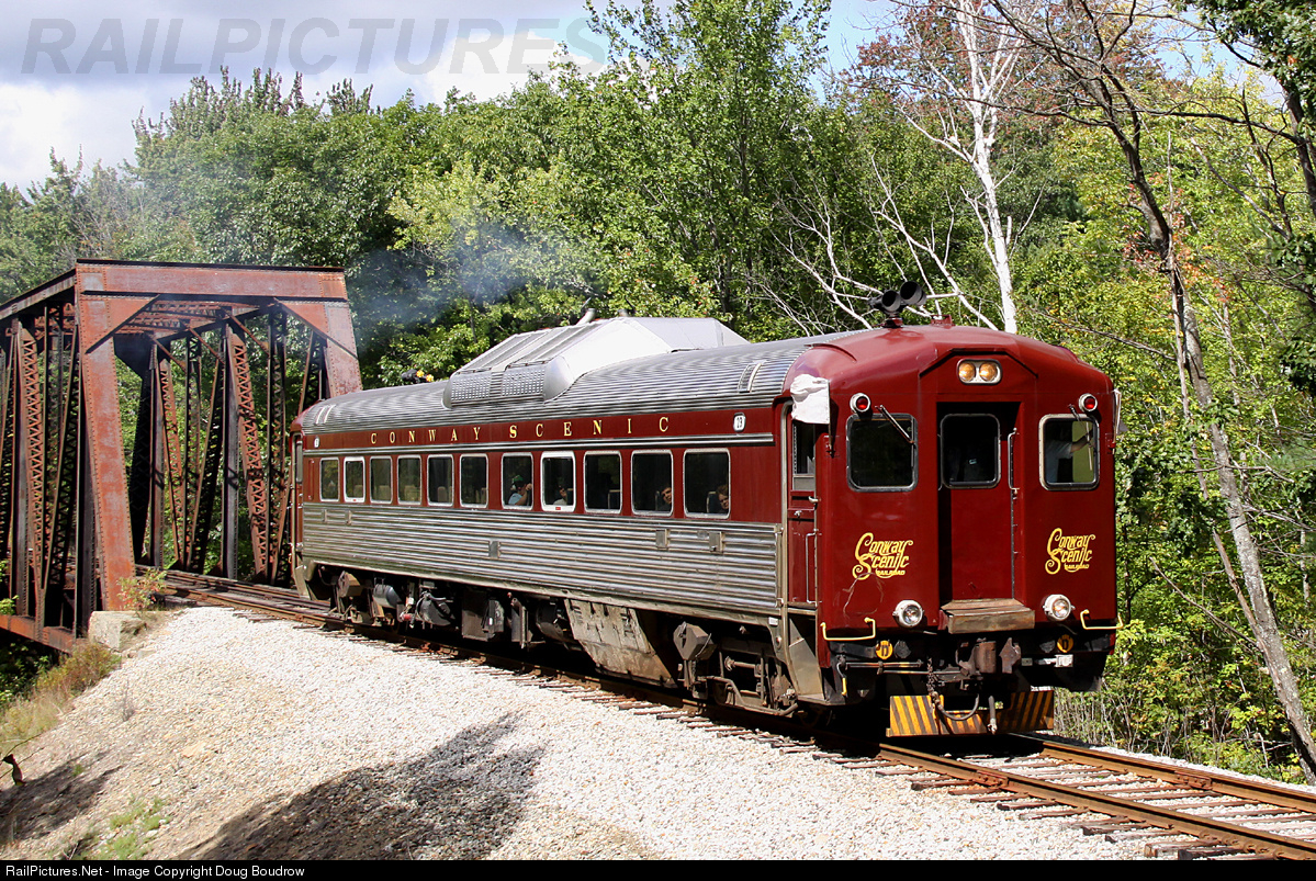 Conway Scenic's nicely restored Budd RDC "Millie" comes into Intervale crossing the bridge at Woodland Pines during a passenger extra for the 2012 annual "Railfans Weekend."