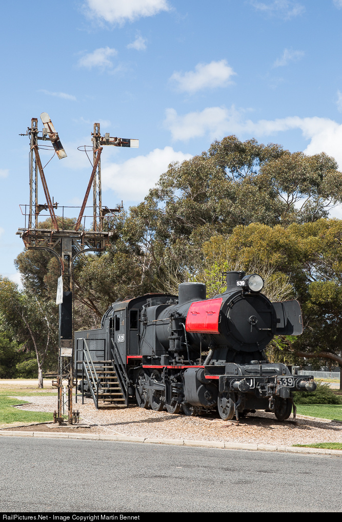 J539 enjoys retirement in a park in Dimboola, a few hundred metres down the road from the Melbourne - Adelaide mainline. J539 was built in 1954, and taken off register in 1973.