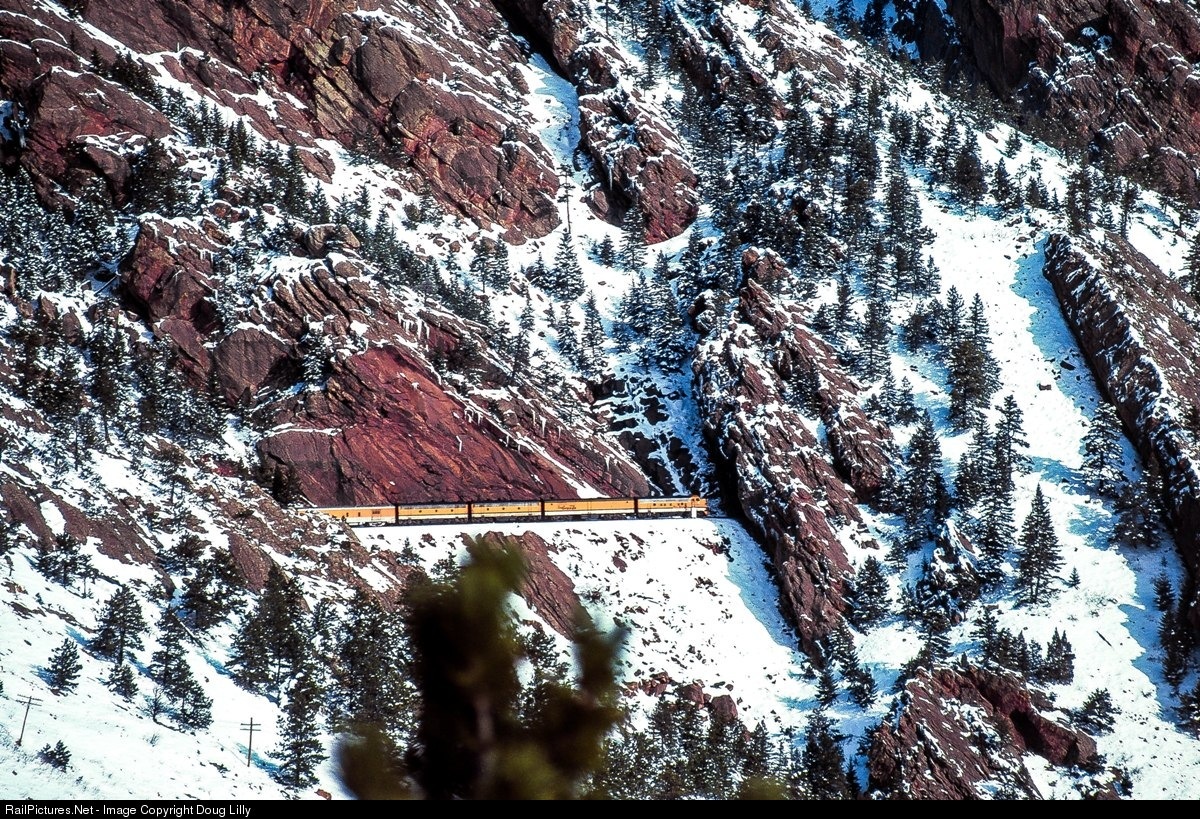 | Threading the Needle in the Flatirons: Now firmly in the tunnel district of the Moffat Road main line, the Rio Grande Zephyr’s power has cleared Tunnel 2. Before the first revenue car clears Tunnel 2, the lead unit will be fully into Tunnel 3.